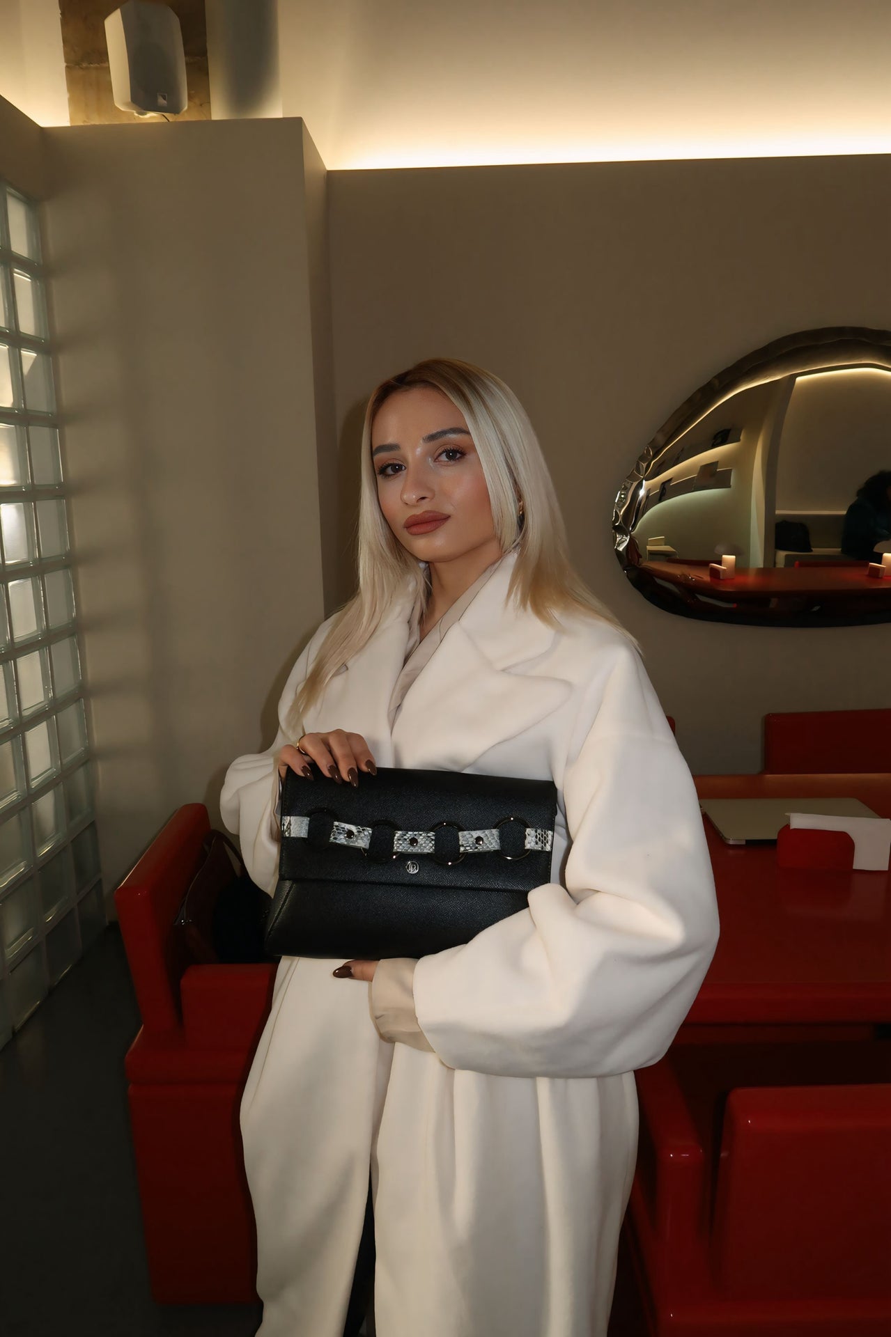 This Stunning clutch and across body Bag from LaBante London features a striking faux snake  embellishment. Wear it like a shoulder bag or a clutch or across body bag. Being Multifunctional, this bag transforms into the perfect companion for your evening walks or night out. The distinctive LB logo will ensure your friends know that its cruelty free and sustainable. What's more is that your purchase will enable us  to plant 10 trees in Madagascar on your behalf which will reduce your yearly carbon footprint by 25%.