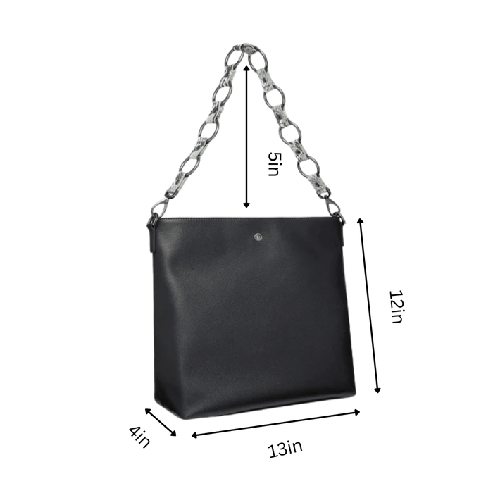 The Alstonia Hobo Bag is designed in a slouchy shape with a spacious interior made from recycled plastic bottles. Carry all your essentials in a sleek, soft shaped bag designed to rest comfortably on your shoulder with the designer snake chain strap or use is as an cross body with its long adjustable strap or if you wish to have a more classic look carry it elegantly as a hand held tote on your arm. Featuring a zip closure so that your valuables always stay safe and and smart, elegant hardware details featuring the iconic LB logo. This is the perfect casual silhouette to carry for your daily walks or your evening out, offering you style and practicality. What's more is that your purchase will enable us to plant 10 trees in Madagascar on your behalf which will reduce your yearly carbon footprint by 25%.
