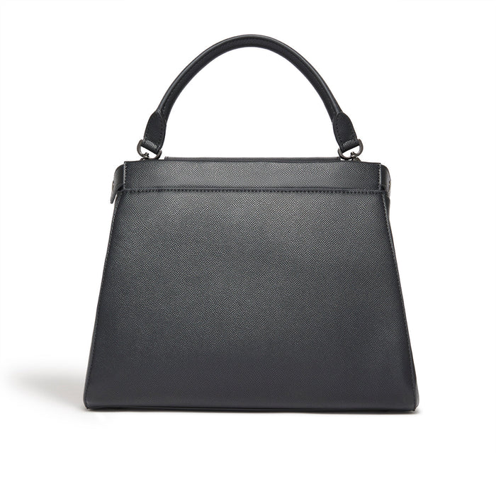 The Elm black vegan shoulder bag features a flap closure and the iconic LB logo. Handcrafted with premium Blue Star Vegan leather this Tote bag ensures you have space and style for your day to day outfits. It features two internal compartments, a central zip compartment and your belongings stay with our custom made lock. With an additional faux snake designer strap this stunning tote converts into a shoulder bag.