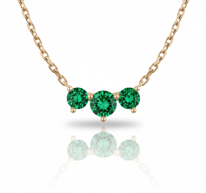 Three luminous stones, symbolic of past, present, and future, rest gracefully along a fine 14K gold chain. Every element reflects harmony and proportion, exuding understated sophistication.